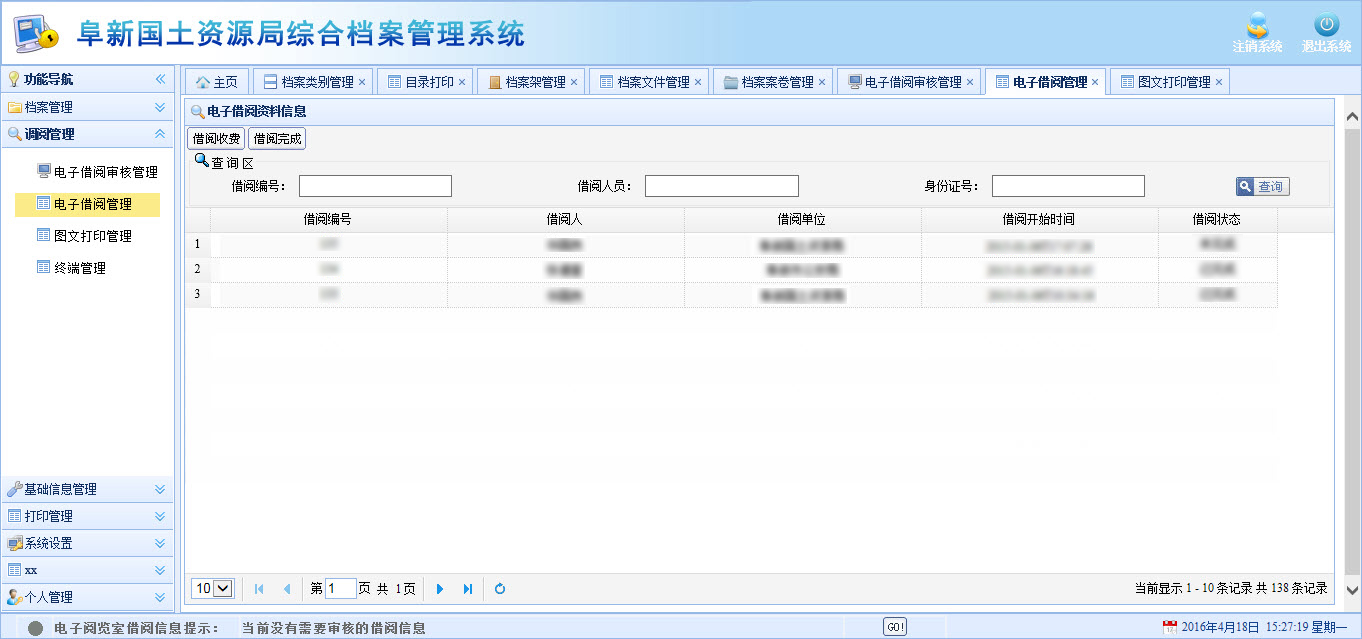 系统在综合档案资料收、管、用等各个环节上都有相应的查询功能,既能满足借阅人员的需求,也为馆藏人员自己日常办公提供了详尽的查询和追踪功能。