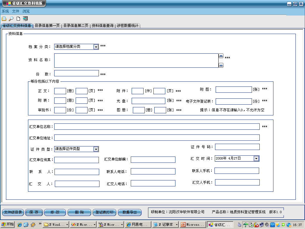 省级汇交资料填报